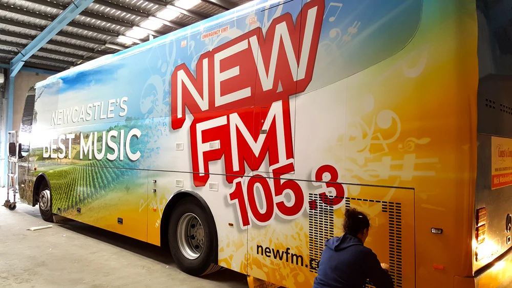 Mick from Coast and Country Tours (pictured below) allowed us to use his shed to apply the graphics to one of his Buses in a clean and dry environment, which was a blessing as it poured the entire time we were signwriting the bus. Once again we were lucky to be working among helpful, friendly people, which just makes our job so much easier.